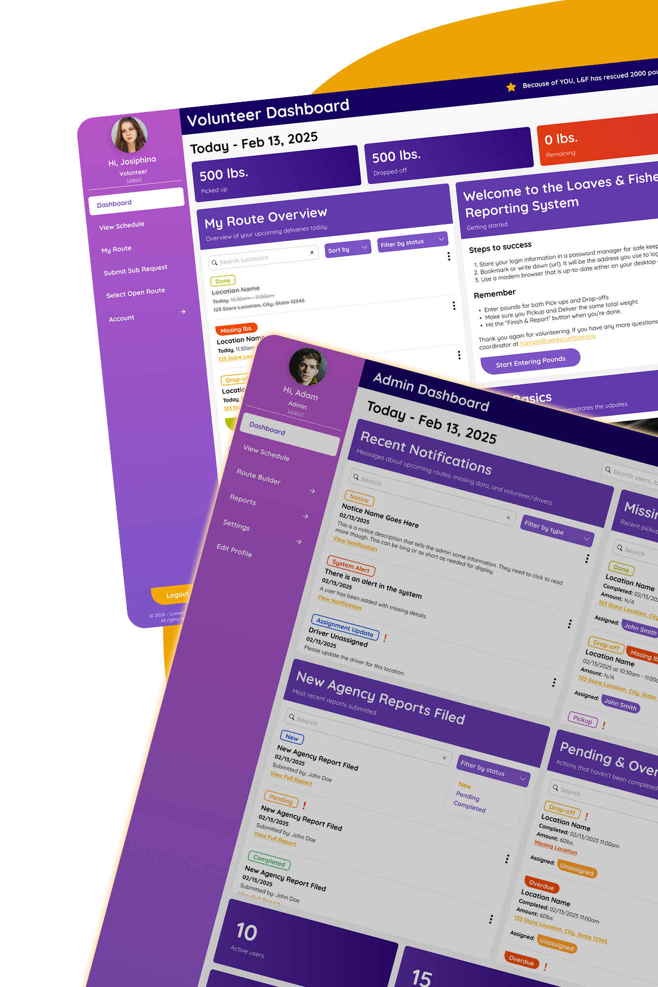 A smart web app that streamlines food pickups and deliveries, connecting volunteers, drivers, and agencies seamlessly.